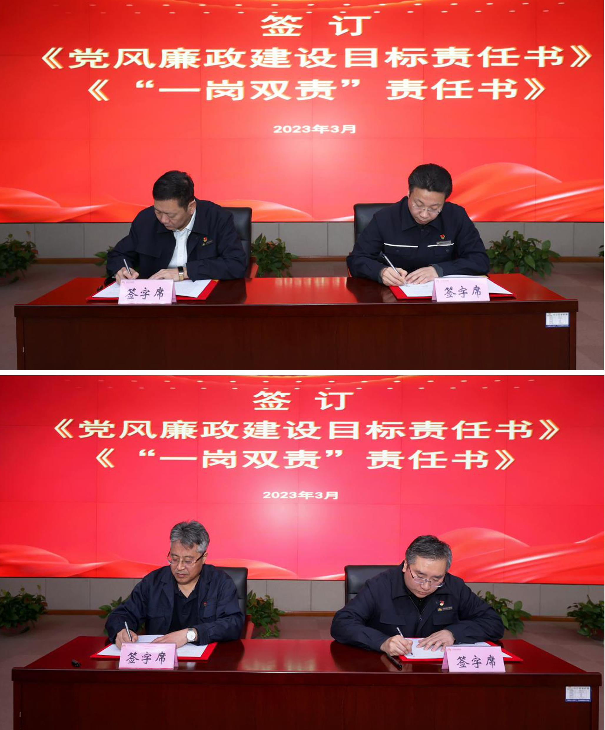 會(huì)上觀看了濟(jì)南市黨員領(lǐng)導(dǎo)干部違紀(jì)違法典型案例警示錄《永遠(yuǎn)吹沖鋒號(hào)》,簽訂了《黨風(fēng)廉政建設(shè)目標(biāo)責(zé)任書》《“一崗雙責(zé)”責(zé)任書》。