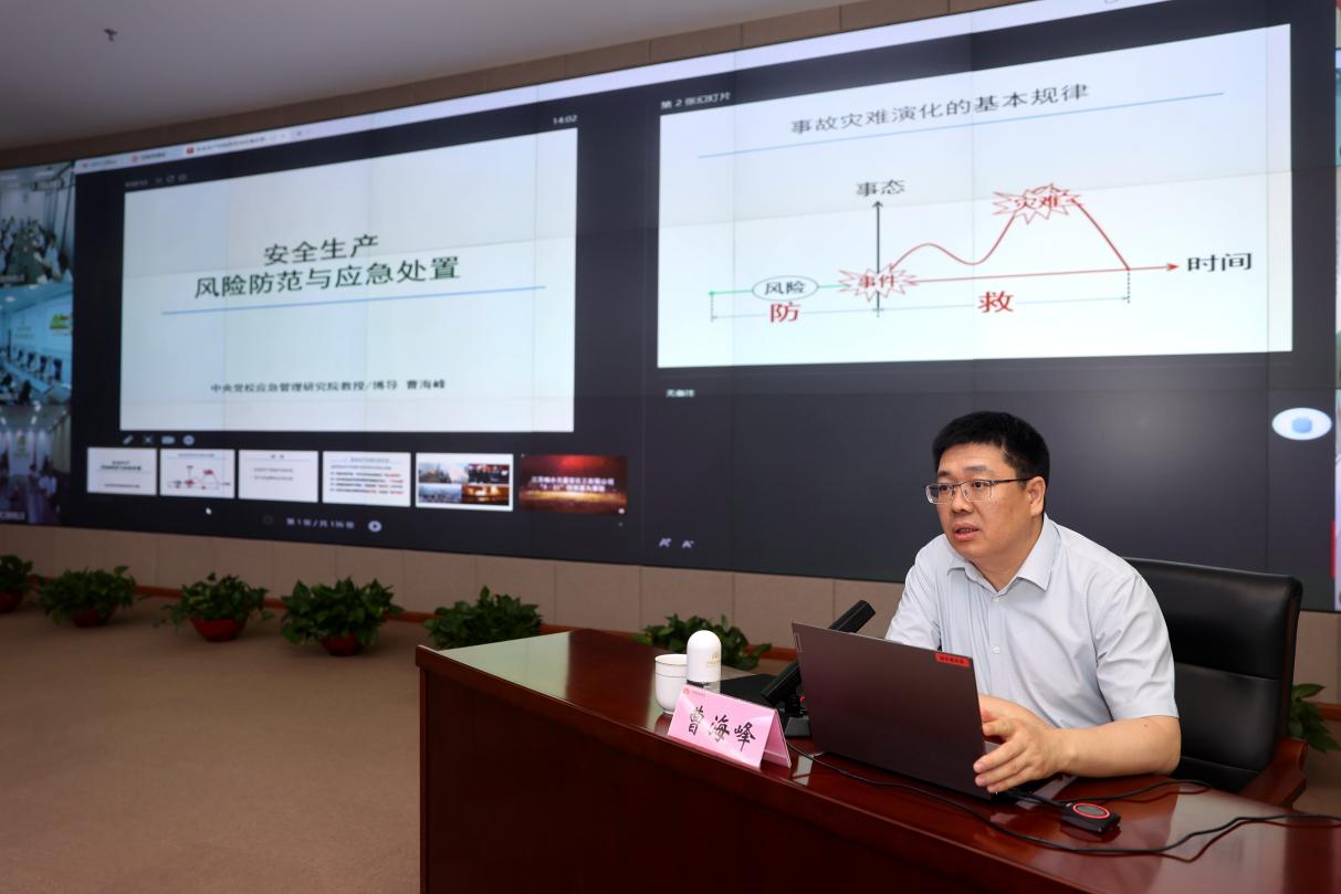 本次培訓(xùn)邀請中共中央黨校應(yīng)急管理教研部教授、博士生導(dǎo)師,中國應(yīng)急管理學(xué)會理事、石油石化分委員會副主任委員,國家電力應(yīng)急專家?guī)斐蓡T曹海峰圍繞“生產(chǎn)安全風(fēng)險(xiǎn)防范與應(yīng)急處置”主題授課。