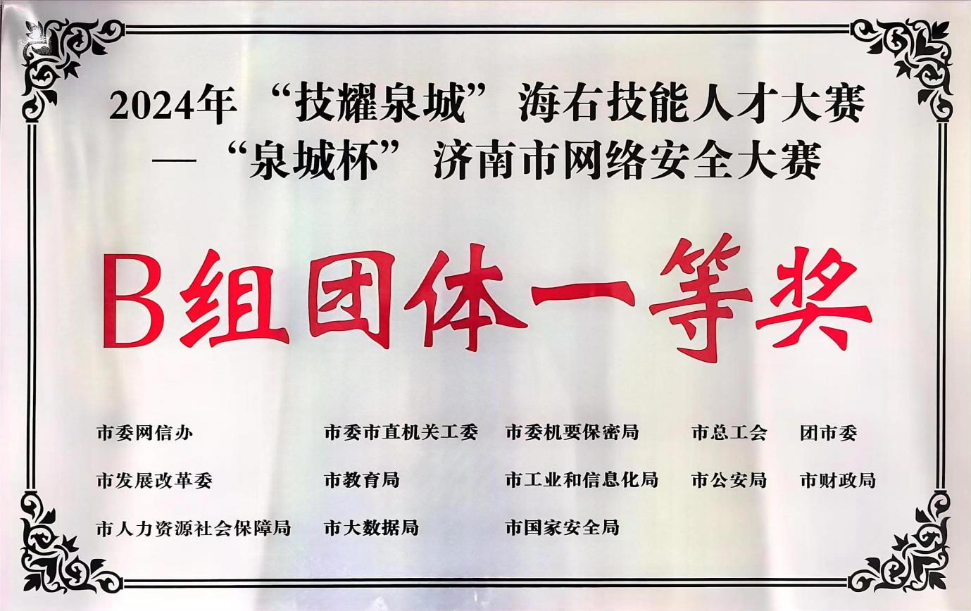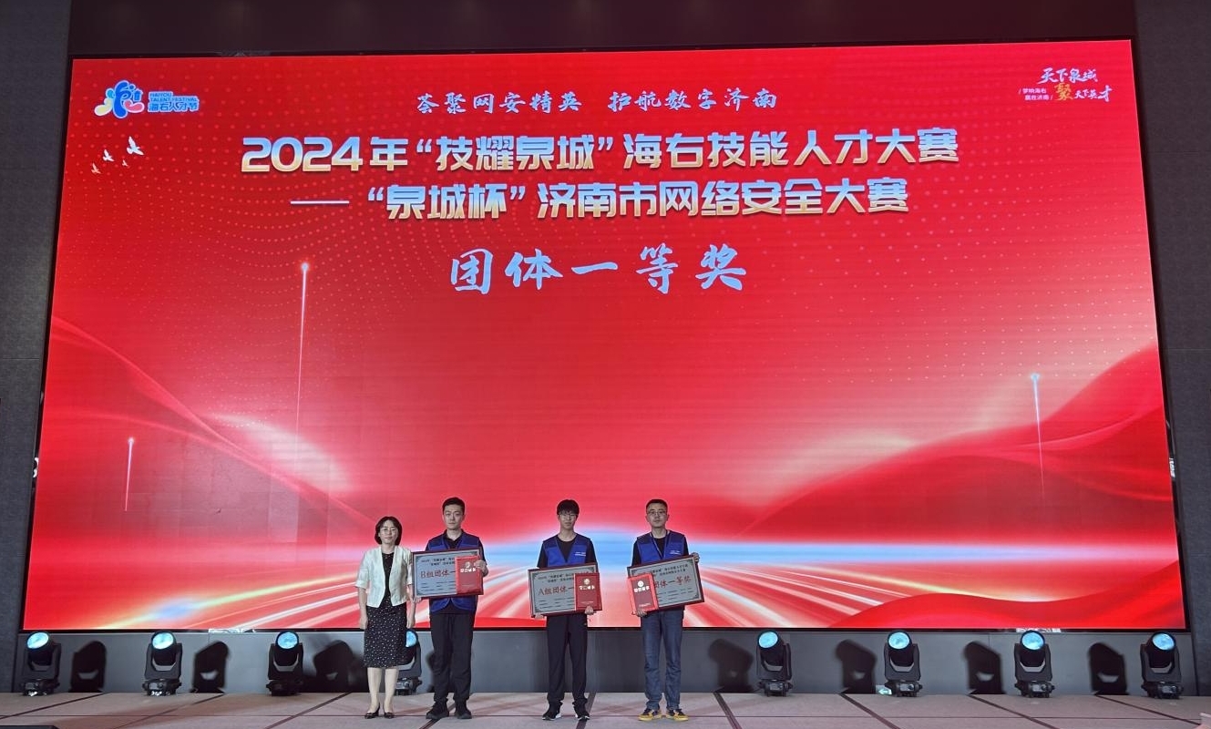 7月11日,2024年“技耀泉城”海右技能人才大賽—“泉城杯”濟(jì)南市網(wǎng)絡(luò)安全大賽成功落下帷幕。來自全市黨政機(jī)關(guān)、企事業(yè)單位103支隊伍、302名選手參加本次大賽。經(jīng)過激烈角逐,濟(jì)南能源集團(tuán)隊獲B組團(tuán)體一等獎,兩名參賽選手獲得個人一等獎、個人二等獎獎項。
