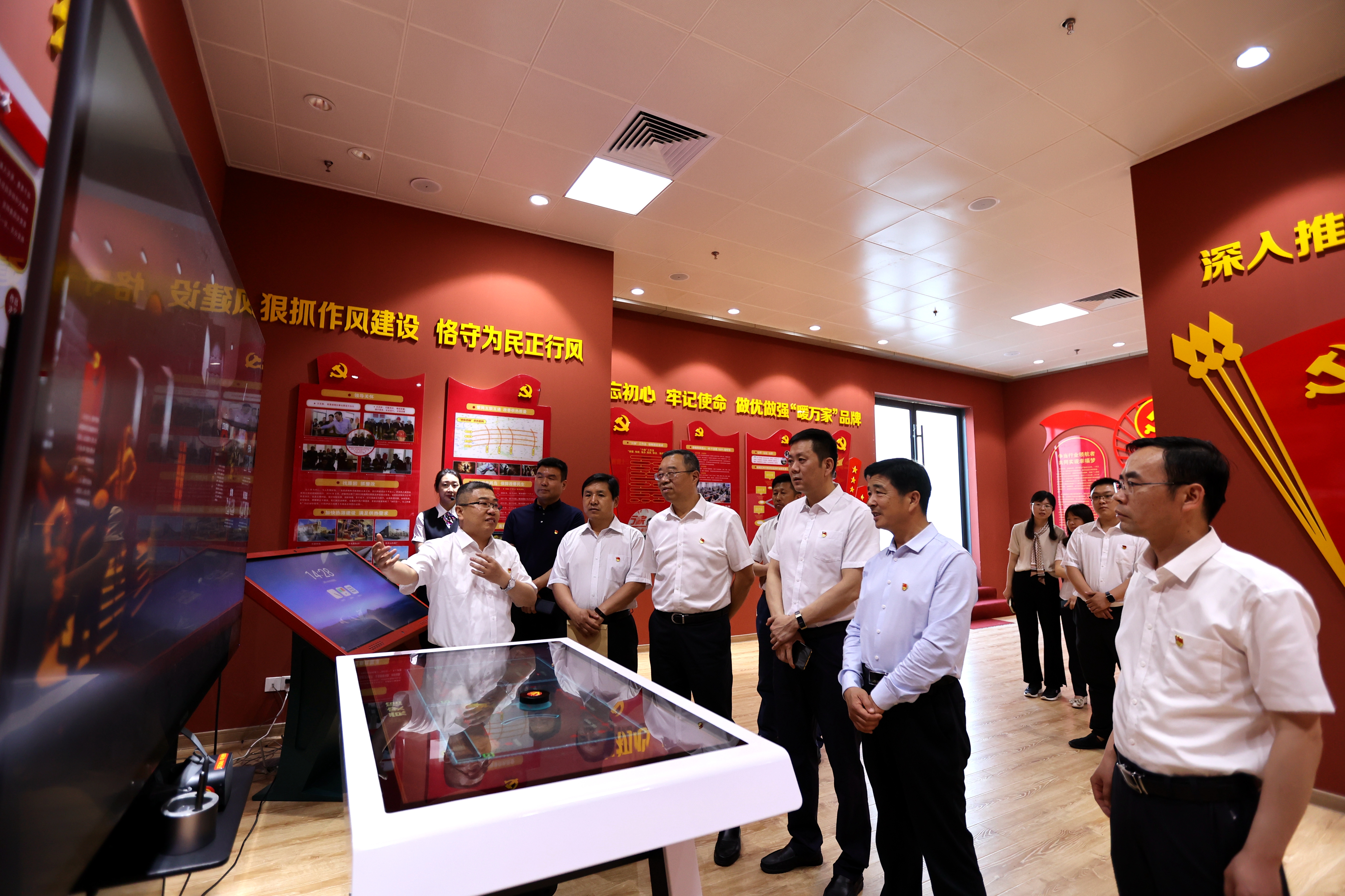 揭牌儀式結(jié)束后,與會(huì)領(lǐng)導(dǎo)共同參觀了濟(jì)南能源集團(tuán)黨建教育基地及ERP大數(shù)據(jù)機(jī)房,現(xiàn)場(chǎng)體驗(yàn)智慧黨建VR。據(jù)了解,為深入開(kāi)展黨史學(xué)習(xí)教育,濟(jì)南能源集團(tuán)在原有黨建文化中心基礎(chǔ)上增加了智慧黨建管理平臺(tái)、智慧3D數(shù)字展館、燈塔之窗式VR體驗(yàn)紅色教育基地等科技黨建模塊,用科技為黨建賦能,通過(guò)VR技術(shù)應(yīng)用使廣大黨員可通過(guò)智慧黨建設(shè)備,更直觀、生動(dòng)地開(kāi)展黨史學(xué)習(xí)。