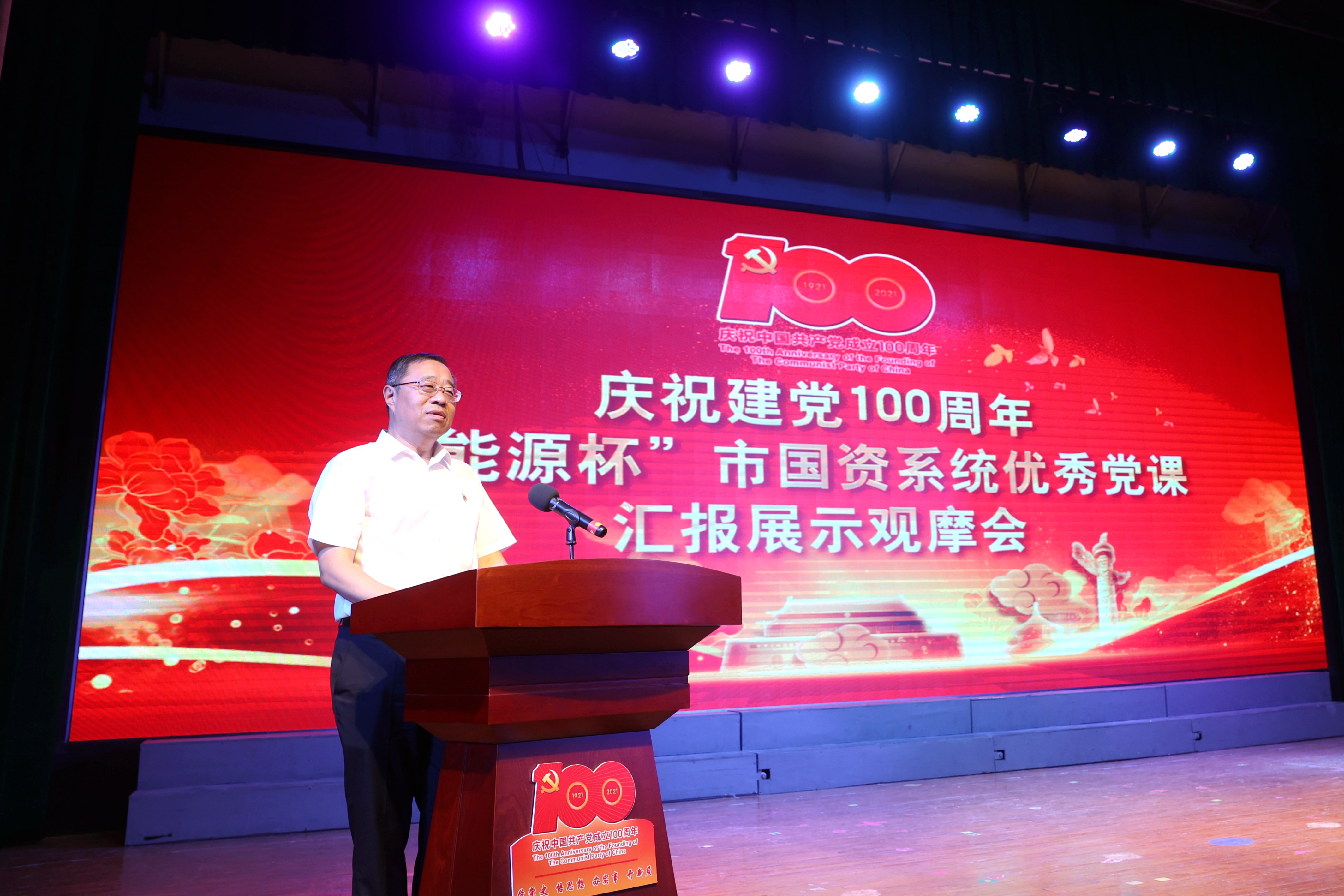 為隆重慶祝中國共產(chǎn)黨成立100周年,扎實推進黨史學習教育,6月2日,由濟南市國資委主辦、濟南能源集團承辦的“能源杯”市國資系統(tǒng)優(yōu)秀黨課匯報展示觀摩會在北郊熱電廠禮堂隆重舉行。市委黨史學習教育第十四巡回指導組組長張令軍,市國資委副主任、黨委委員謝紅兵,市國資委黨委委員、正處級領導干部劉永軍,濟南能源集團有限公司黨委書記、董事長潘世英,市委宣傳部宣傳教育處副處長榮榮,市委講師團副處級干部呂桂紅出席活動。