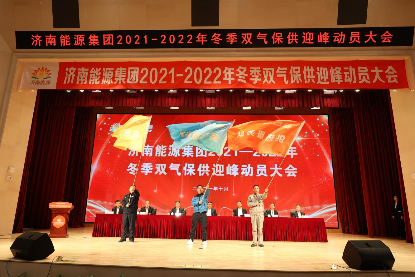 會(huì)上,陳勇、潘世英為一線供熱服務(wù)隊(duì)、供氣服務(wù)隊(duì)、應(yīng)急搶修隊(duì)代表授旗。與會(huì)領(lǐng)導(dǎo)為代表山東出征全運(yùn)會(huì)獲得佳績(jī)的男足代表隊(duì)頒發(fā)嘉獎(jiǎng)狀,集團(tuán)號(hào)召全體干部職工向他們學(xué)習(xí),同舟共濟(jì)、勠力同心,激發(fā)干事創(chuàng)業(yè)精氣神,投身民生服務(wù)主戰(zhàn)場(chǎng)。濟(jì)南熱力、山東濟(jì)華、濟(jì)南能源工程集團(tuán)負(fù)責(zé)人依次做表態(tài)發(fā)言,表示將立足3.14億平方米供熱主戰(zhàn)場(chǎng),充分發(fā)揚(yáng)“能源鐵軍”精神,敢打必勝、決戰(zhàn)決勝,堅(jiān)決打贏冬季保供“濟(jì)南戰(zhàn)役”,切實(shí)保障171萬戶熱力用戶、210萬戶燃?xì)庥脩舳菊S脽?、用氣?/p>