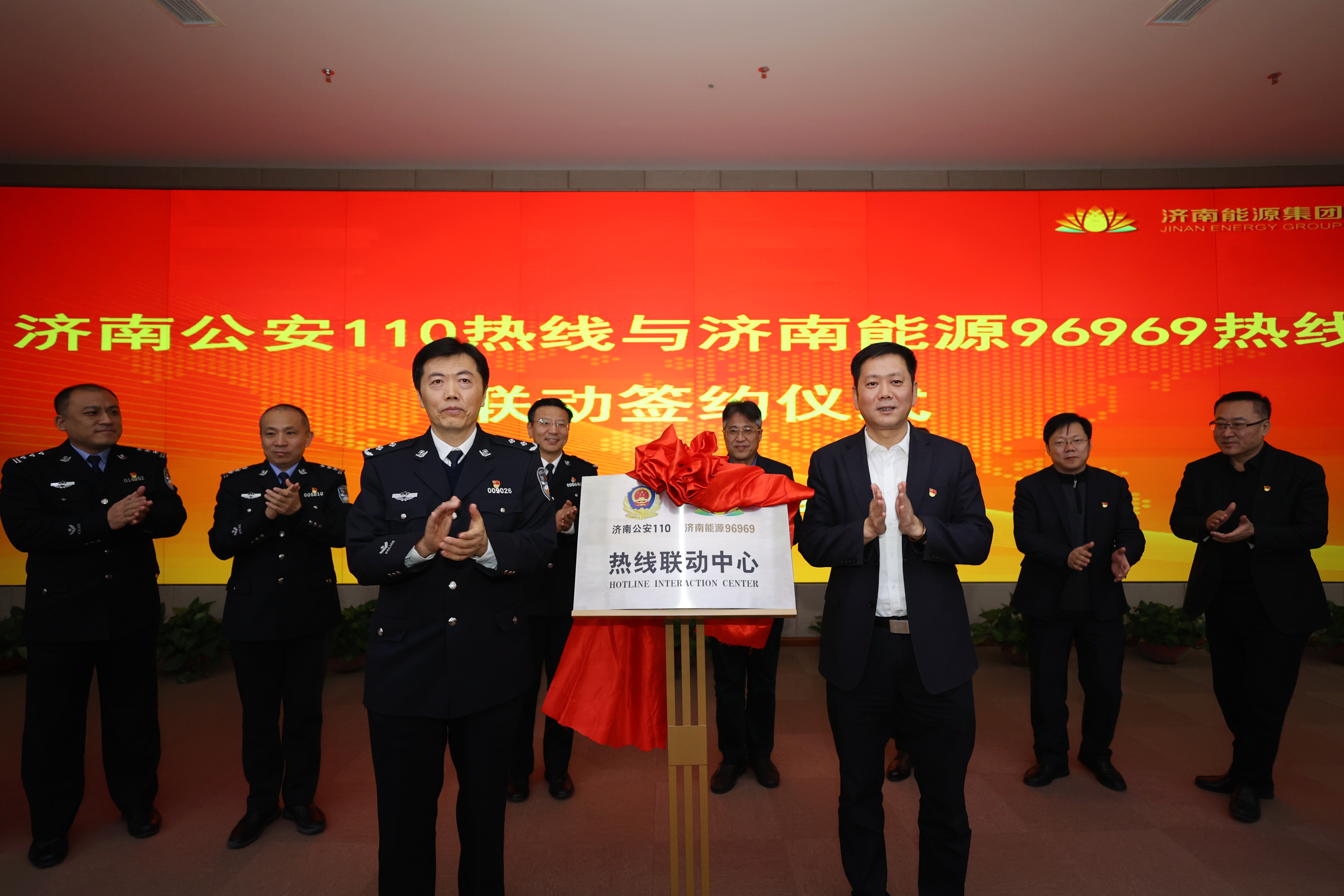 1月7日下午,濟(jì)南公安110熱線與濟(jì)南能源集團(tuán)96969熱線聯(lián)動(dòng)簽約儀式在濟(jì)南能源集團(tuán)舉行。濟(jì)南能源集團(tuán)黨委書(shū)記、董事長(zhǎng)潘世英,濟(jì)南市公安局二級(jí)警務(wù)專(zhuān)員韓磊參加活動(dòng),并為“濟(jì)南公安110、濟(jì)南能源集團(tuán)96969熱線聯(lián)動(dòng)中心”揭牌。