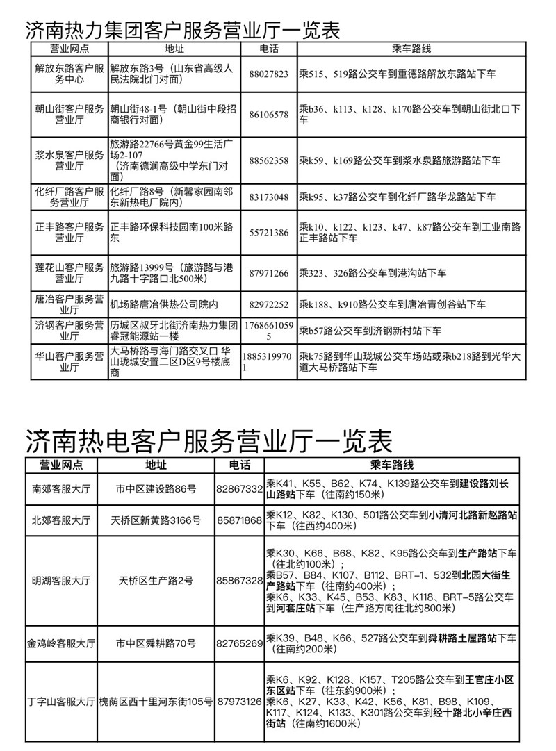 與濟(jì)南熱電有限公司簽訂《供用熱力合同》的用戶可到營(yíng)業(yè)廳辦理繳費(fèi),還可在手機(jī)端通過(guò)“溫溫暖暖”手機(jī)APP、“濟(jì)南熱電”微信服務(wù)號(hào)、支付寶生活、微信生活繳費(fèi)。此外,濟(jì)南熱電還與工商銀行、建設(shè)銀行、農(nóng)業(yè)銀行、郵儲(chǔ)銀行、興業(yè)銀行等十一家銀行合作由銀行代收采暖費(fèi)。