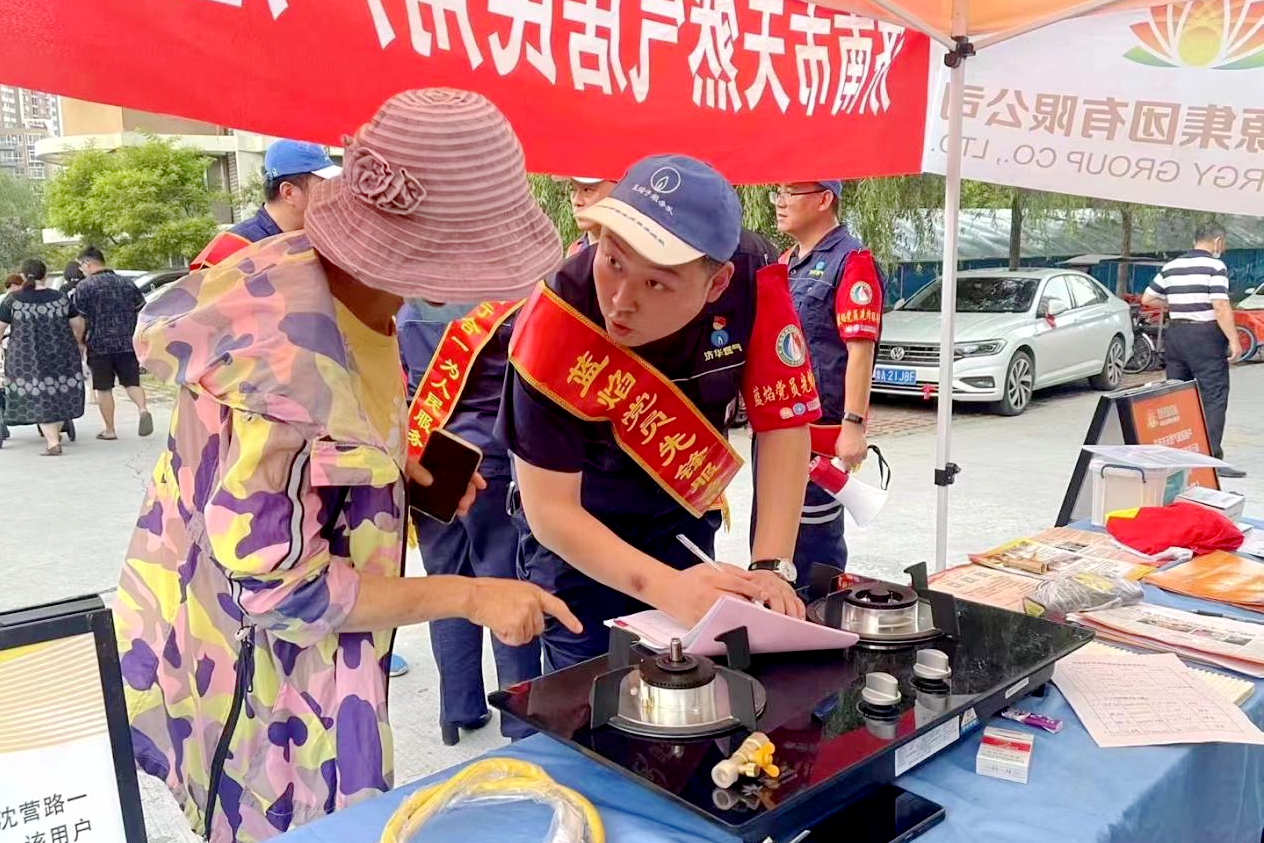 “用燃?xì)?,有難題,能源集團(tuán)幫助您。講知識(shí),送安全,膠管免費(fèi)為您換……” 7月24日,濟(jì)南能源集團(tuán)所屬山東濟(jì)華燃?xì)夤芫W(wǎng)運(yùn)行部的黨員志愿者們正拿著小喇叭,在宏瑞國(guó)際星城小區(qū)的樓宇間“奔走相告”。簡(jiǎn)單的順口溜,從軟管更換到燃?xì)獬WR(shí),再到安全操作,覆蓋了此次“紅心藍(lán)焰送‘安燃’”燃?xì)庠O(shè)施升級(jí)改造行動(dòng)的方方面面。