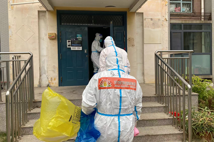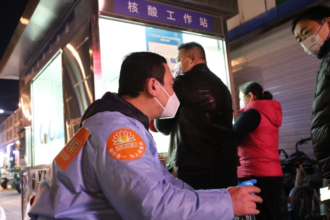 “為確保管控區(qū)市民生活物資有序、及時(shí)送達(dá),提高核酸采樣質(zhì)效,我們采取全員全封閉式脫產(chǎn),每天早上6:00集合,晚上10:00返回集中居住地。濟(jì)南能源燃?xì)馄髽I(yè)近百名志愿者平均每天協(xié)助完成近4萬戶市民的核酸檢測(cè),同時(shí)高效完成高風(fēng)險(xiǎn)區(qū)域住戶生活物資配送、垃圾清運(yùn)并對(duì)樓電梯間進(jìn)行消毒處理等工作。”姜峰表示。