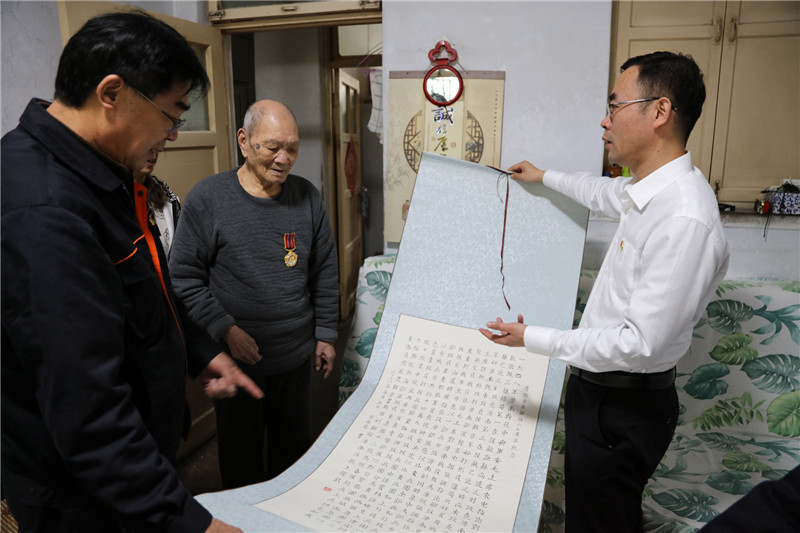 離休老干部、志愿軍老戰(zhàn)士常維德雖已92歲高齡,但仍然精神抖擻。在常維德家中,王維青、趙宗柱一行與他促膝交談,關(guān)切詢問老人身體狀況和生活起居等情況,老人感慨萬千地回憶起他經(jīng)歷過的那段艱苦卓絕的戰(zhàn)斗歷程,慷慨激昂地背誦起毛澤東詩詞,并興致勃勃地向大家展示他的書法作品。王維青、趙宗柱一行認(rèn)真聆聽,并表示,老戰(zhàn)士們的英勇戰(zhàn)斗和歷史功績(jī),黨和政府永遠(yuǎn)不會(huì)忘記,革命前輩們流血流汗,才換來我們今天的幸福生活。能源集團(tuán)會(huì)始終以老戰(zhàn)士、老同志的需求為導(dǎo)向,精心做好服務(wù)保障工作,精準(zhǔn)幫助他們解決生活中的實(shí)際問題,讓他們生活舒心、晚年幸福,切實(shí)感受到能源集團(tuán)這個(gè)大家庭的溫暖。