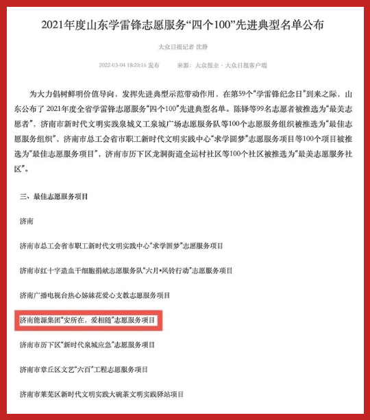 【能源文化】“安所在 愛相隨”入選“山東學(xué)雷鋒最佳志愿服務(wù)項目”濟南能源集團為啥能?