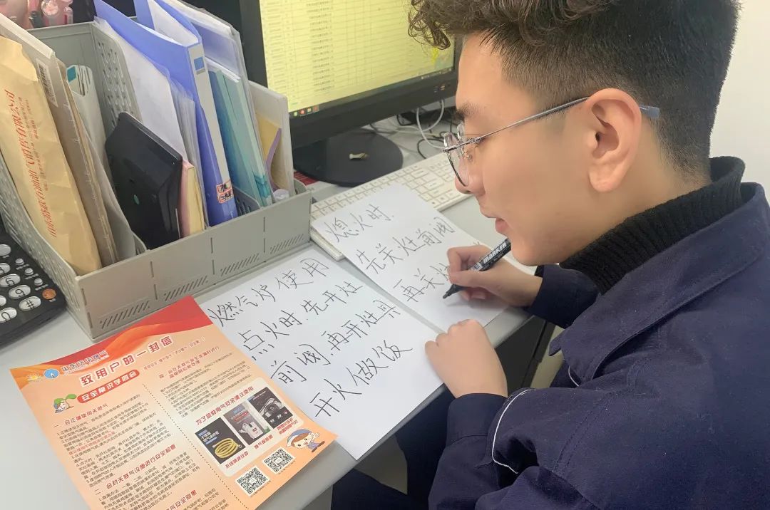 得知此情況后,李浩冉趕緊返回辦公室,用馬克筆寫下“大版”灶具使用操作流程,又一路小跑來(lái)到老人家中。他將這份“特殊”的“大版”灶具使用操作流程交到老人手中,并將自己的電話號(hào)碼留給老人。“奶奶,供氣、供熱常識(shí)我都懂一些?,F(xiàn)在能源集團(tuán)是氣熱聯(lián)動(dòng)服務(wù),我不光是您的供氣管家,還是您的供暖管家。如果您遇到什么氣、熱問(wèn)題,都可以隨時(shí)給我打電話。如果生活上還有其他需要幫助的,也可以隨時(shí)找我。”