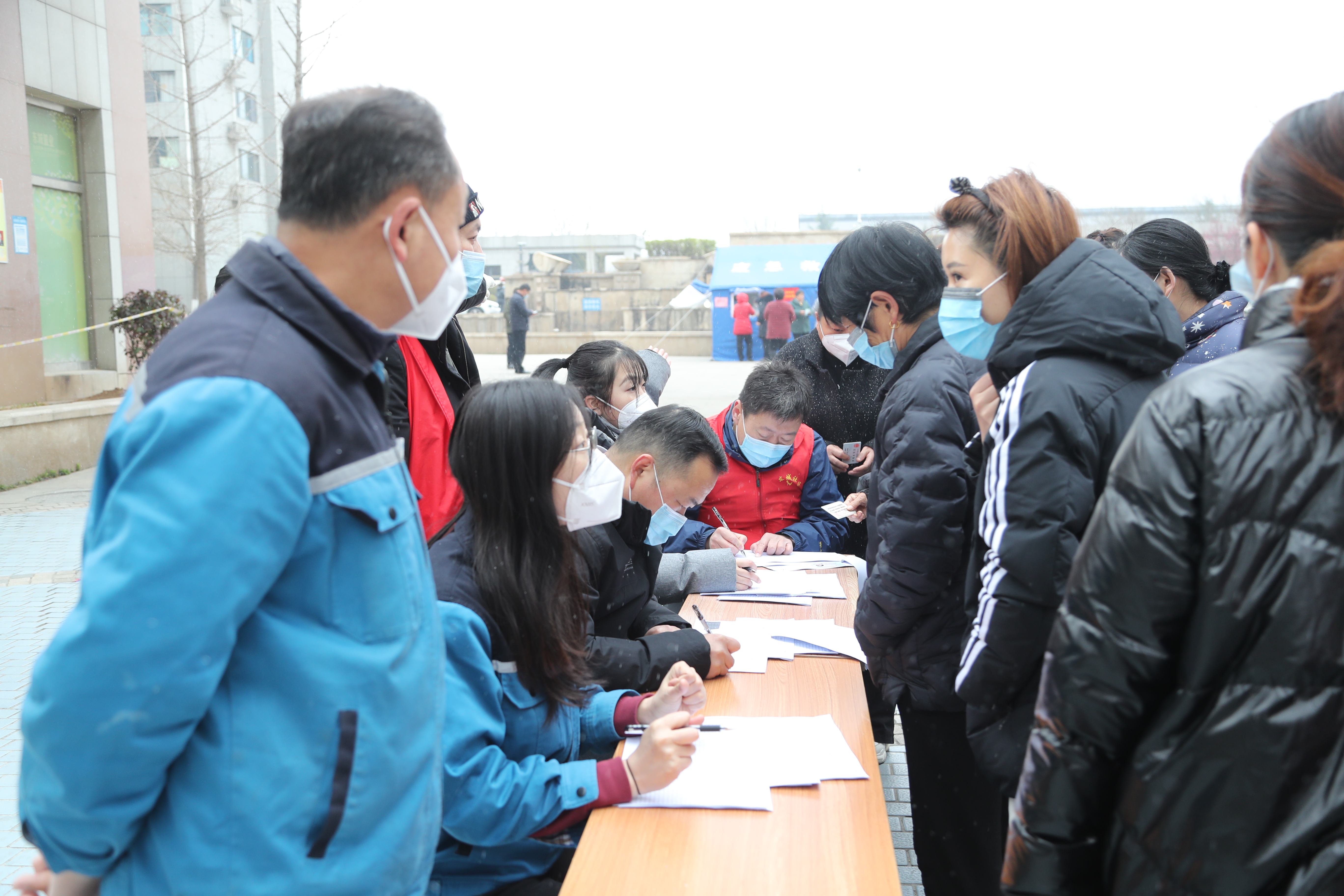 “請(qǐng)大家佩戴好口罩,保持一米距離,拿好身份證。”“您是哪里人?”“您好,量一下體溫。”“麻煩您把信息填一下。”面對(duì)當(dāng)前疫情防控的嚴(yán)峻形勢(shì),有這樣一群能源人,他們放棄周末休息,每日驅(qū)車趕赴章丘福泰、東城社區(qū),雙山街道宏昌和泉山社區(qū),積極協(xié)助參與社區(qū)疫情防控工作。“連日來,我們協(xié)助社區(qū)做好人員摸排查清工作,進(jìn)一步核實(shí)常住人口底數(shù),電話核實(shí)返濟(jì)人員信息、健康狀況,錄入系統(tǒng),力爭(zhēng)做到人數(shù)清、人頭清、位置清、情況清,確保‘不漏一戶、不漏一人’,為下一輪全員核酸檢測(cè)演練工作做好充足準(zhǔn)備。”濟(jì)南港華燃?xì)夤芫W(wǎng)運(yùn)行黨支部黨員代表田力說。