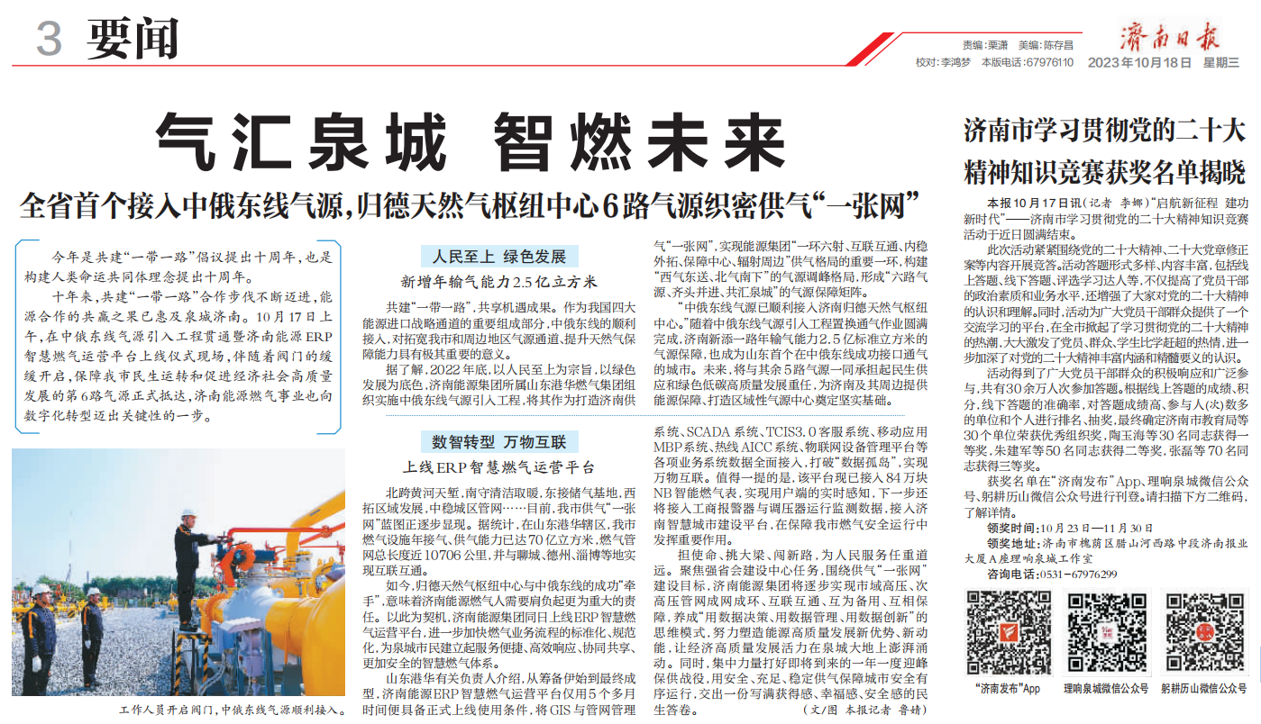 【濟南日報】氣匯泉城 智燃未來 全省首個接入中俄東線氣源,歸德天然氣樞紐中心6路氣源織密供氣“一張網(wǎng)”