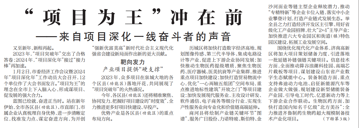 【濟(jì)南日?qǐng)?bào)】“項(xiàng)目為王”沖在前——來自項(xiàng)目深化一線奮斗者的聲音