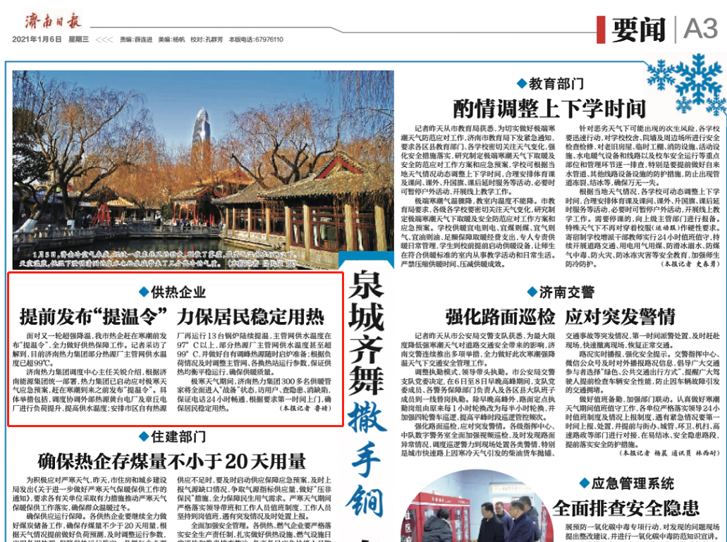 【濟(jì)南日報(bào)A3】提前發(fā)布“提溫令” 力保居民穩(wěn)定用熱