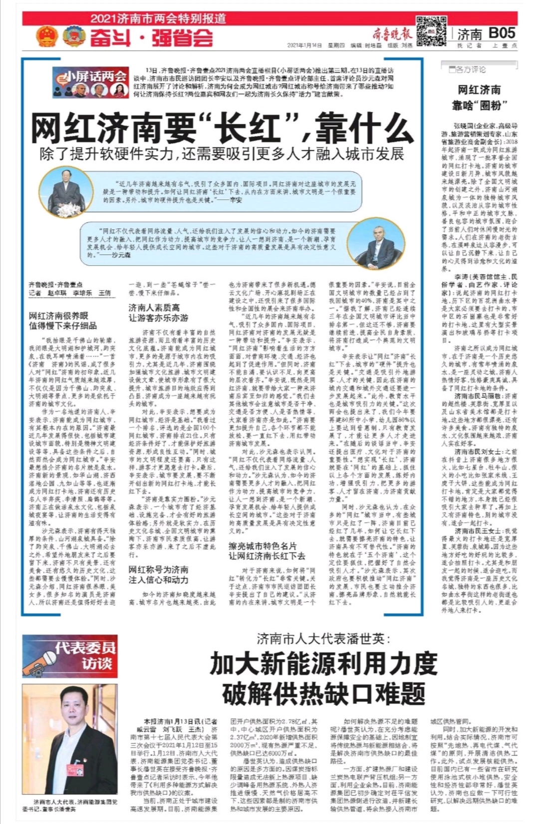 【齊魯晚報(bào) B05】濟(jì)南市人大代表潘世英:加大新能源利用力度 破解供熱缺口難題