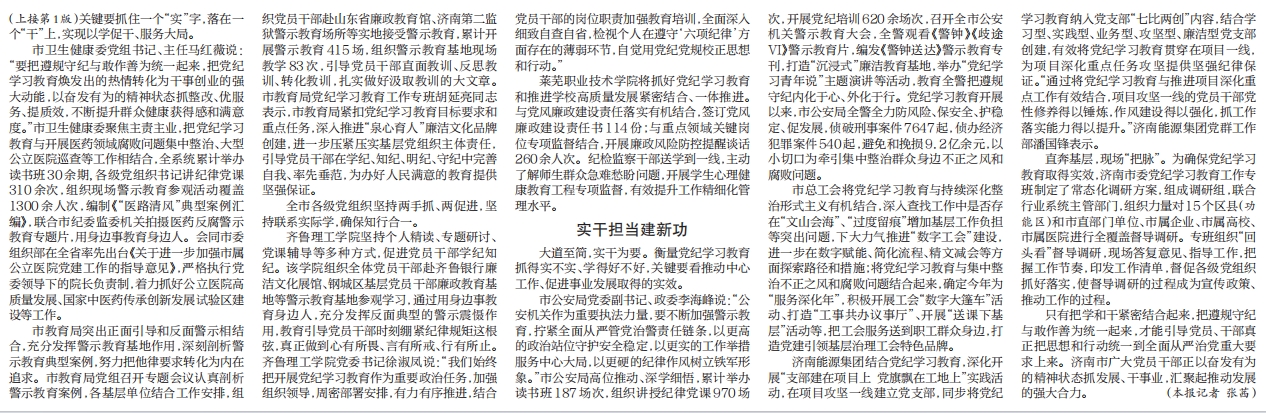 【濟南日報】以深學促實干 以篤行促發(fā)展——全市各級黨組織緊扣“實”字深入推進黨紀學習教育
