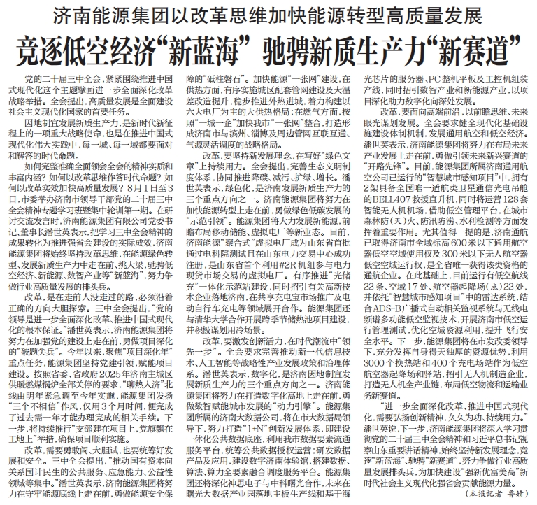 【濟(jì)南日?qǐng)?bào)】濟(jì)南能源集團(tuán)以改革思維加快能源轉(zhuǎn)型高質(zhì)量發(fā)展 競(jìng)逐低空經(jīng)濟(jì)“新藍(lán)?!瘪Y騁新質(zhì)生產(chǎn)力“新賽道”