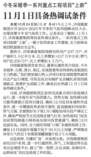 【濟(jì)南日?qǐng)?bào)】今冬采暖季一系列重點(diǎn)工程項(xiàng)目“上新”11月1日具備熱調(diào)試條件