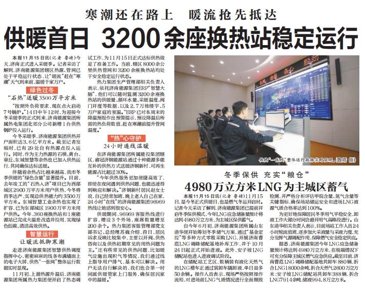 【濟(jì)南日?qǐng)?bào)】寒潮還在路上 暖流搶先抵達(dá) 供暖首日 3200余座換熱站穩(wěn)定運(yùn)行