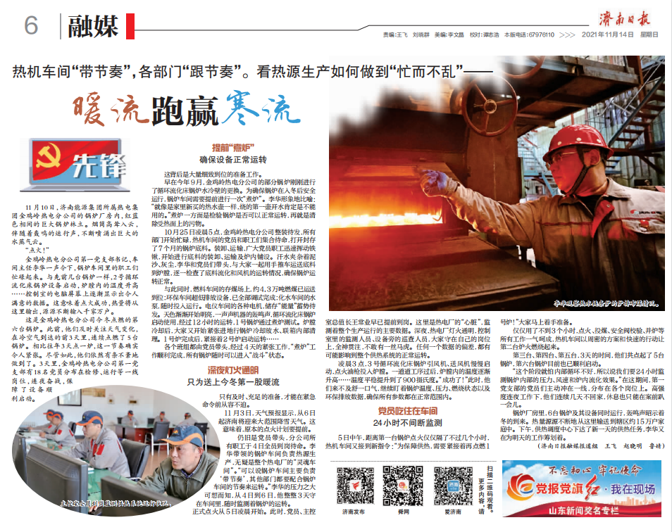 【濟南日報】熱機車間“帶節(jié)奏”,各部門“跟節(jié)奏”??礋嵩瓷a(chǎn)如何做到“忙而不亂”——暖流跑贏寒流