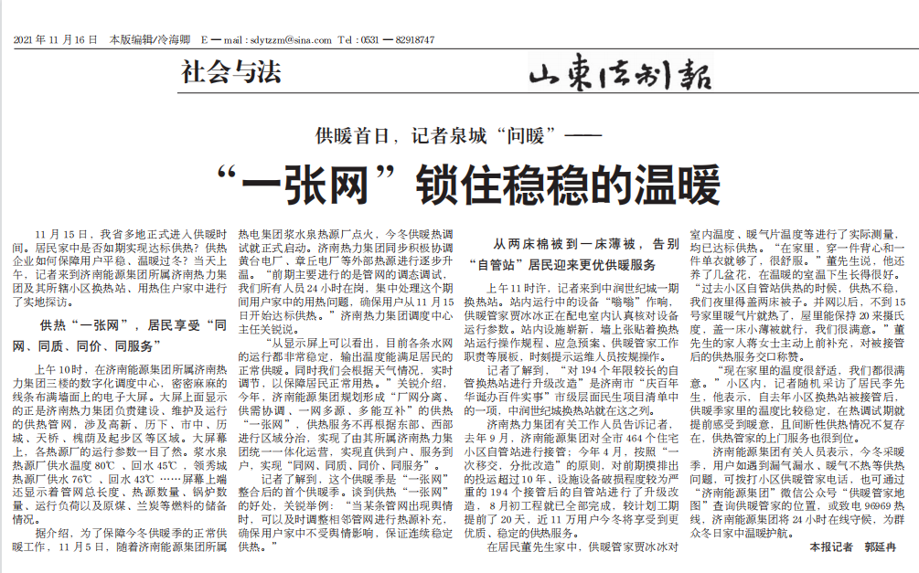 【山東法制報(bào)】供暖首日,記者泉城“問暖”—— “一張網(wǎng)”鎖住穩(wěn)穩(wěn)的溫暖