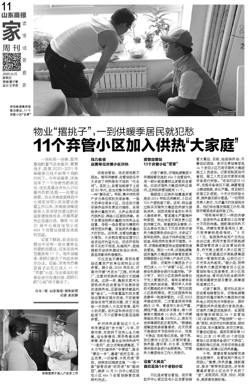 【山東商報】11個棄管小區(qū)加入“供熱大家庭”