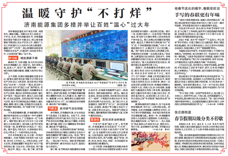 【濟(jì)南日報】溫暖守護(hù)“不打烊”濟(jì)南能源集團(tuán)多措并舉讓百姓“溫心”過大年