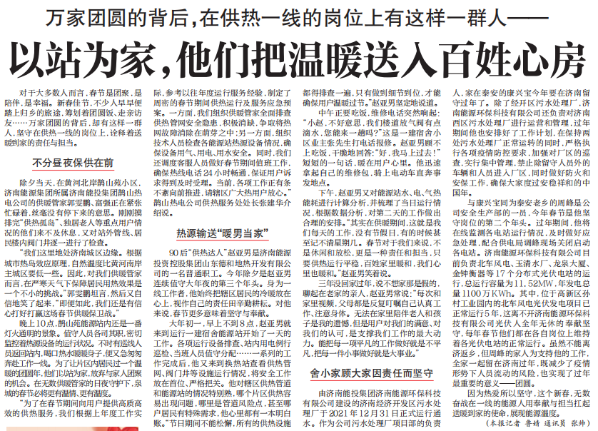 【濟南日報】萬家團圓的背后,在供熱一線的崗位上有這樣一群人—— 以站為家,他們把溫暖送入百姓心房