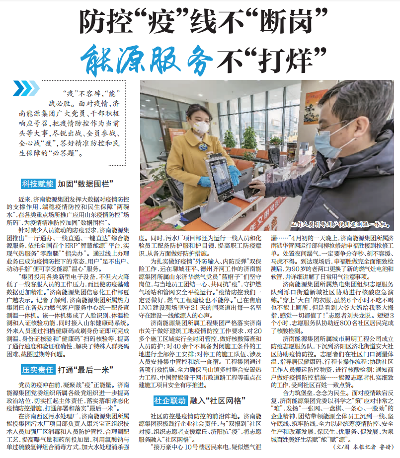 【濟南日報】防控“疫”線不“斷崗” 能源服務不“打烊”