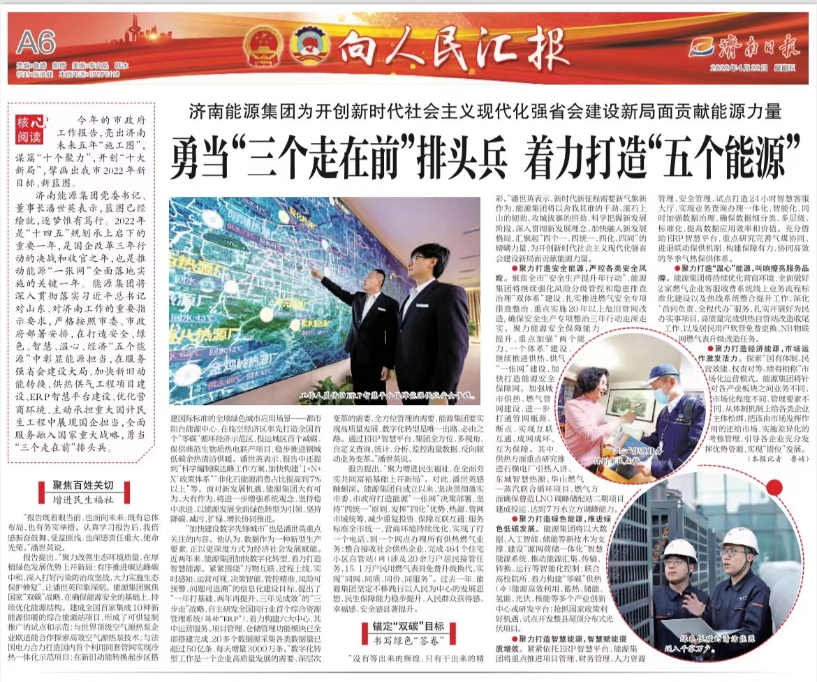 【濟(jì)南日報(bào)】濟(jì)南能源集團(tuán)為開創(chuàng)新時代社會主義現(xiàn)代化強(qiáng)省會建設(shè)新局面貢獻(xiàn)能源力量 勇當(dāng)“三個走在前”排頭兵 著力打造“五個能源”
