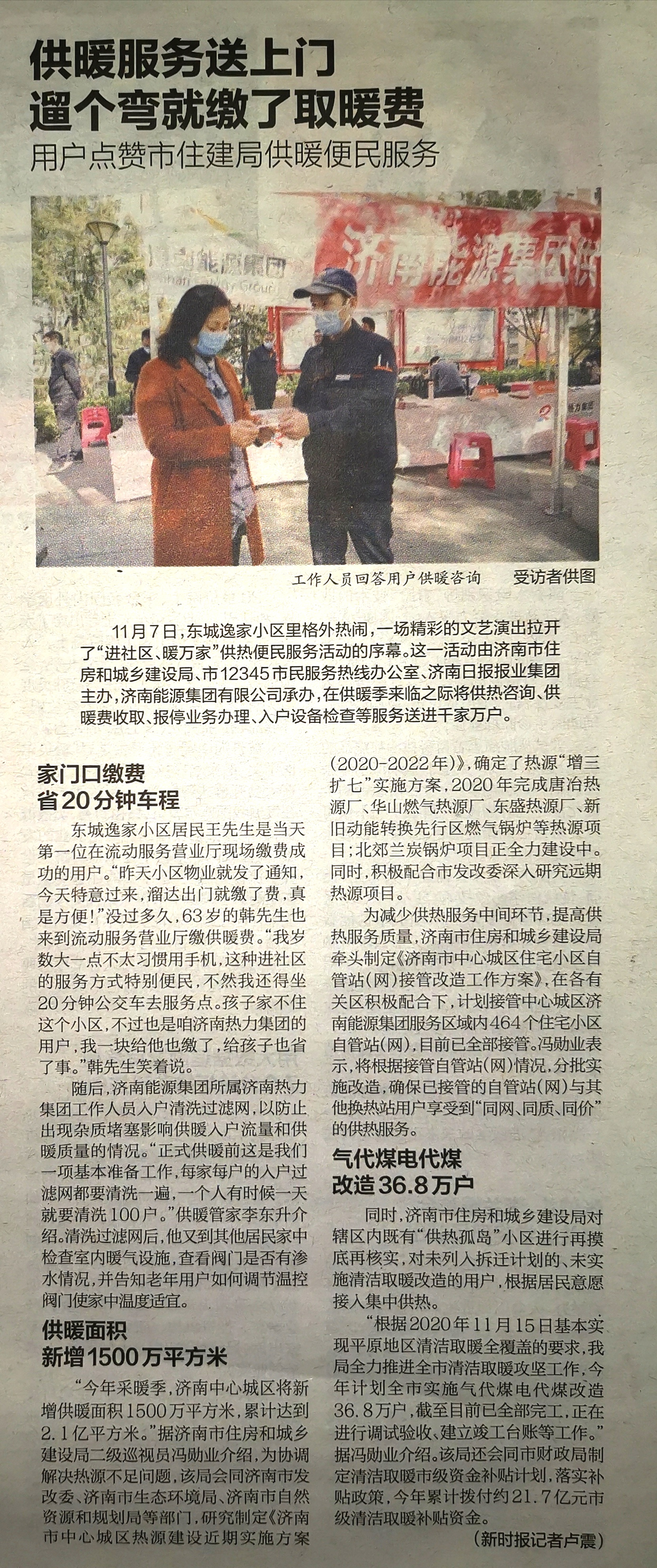 【濟(jì)南時(shí)報(bào)·新時(shí)報(bào)】供暖服務(wù)送上門 遛個彎就繳了取暖費(fèi)