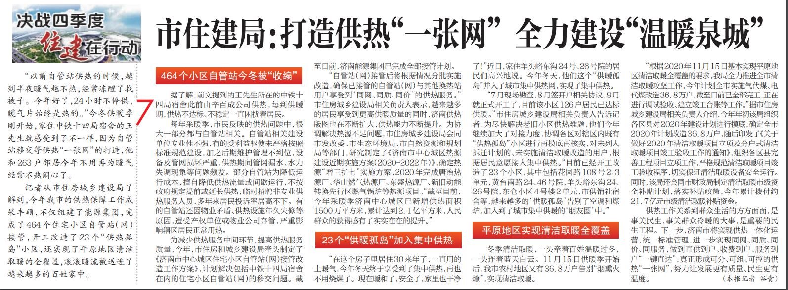 【濟南日報】市住建局:打造供熱“一張網(wǎng)” 全力建設(shè)“溫暖泉城”