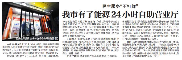 【濟(jì)南日報】民生服務(wù)“不打烊” 我市有了能源24小時自助營業(yè)廳